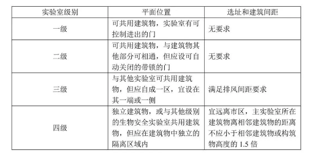 在設(shè)計(jì)和裝修層面,各級(jí)生物安全實(shí)驗(yàn)室需要滿足以下位置要求: